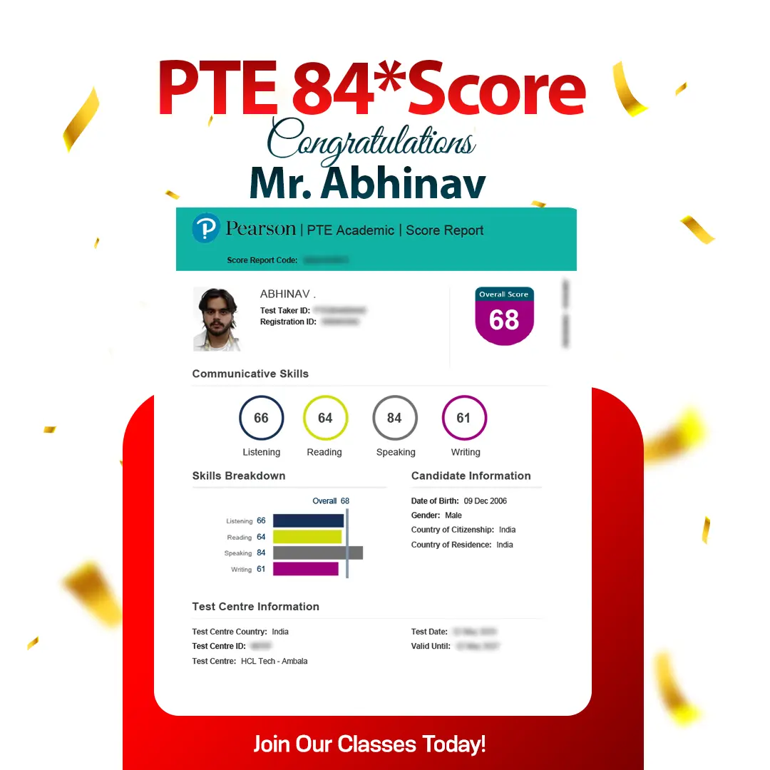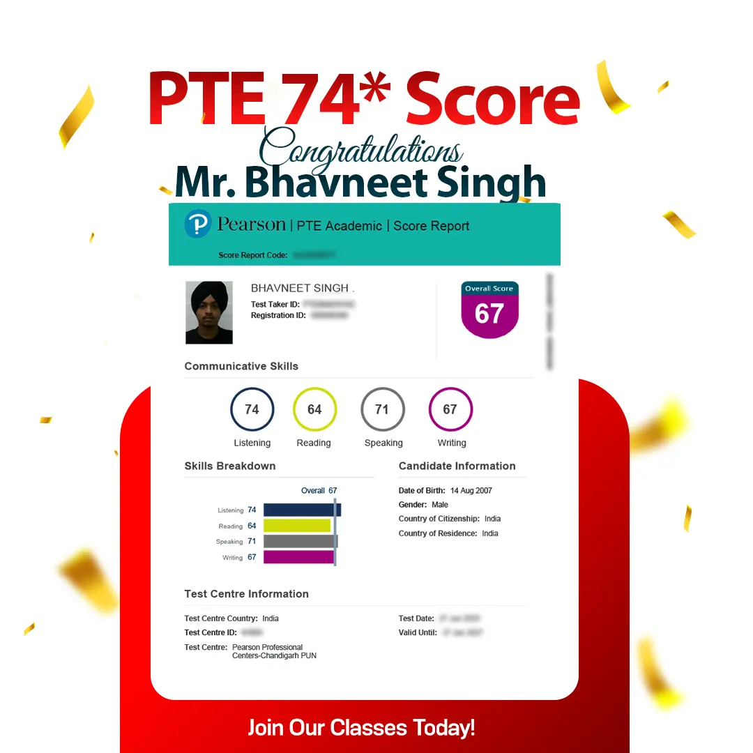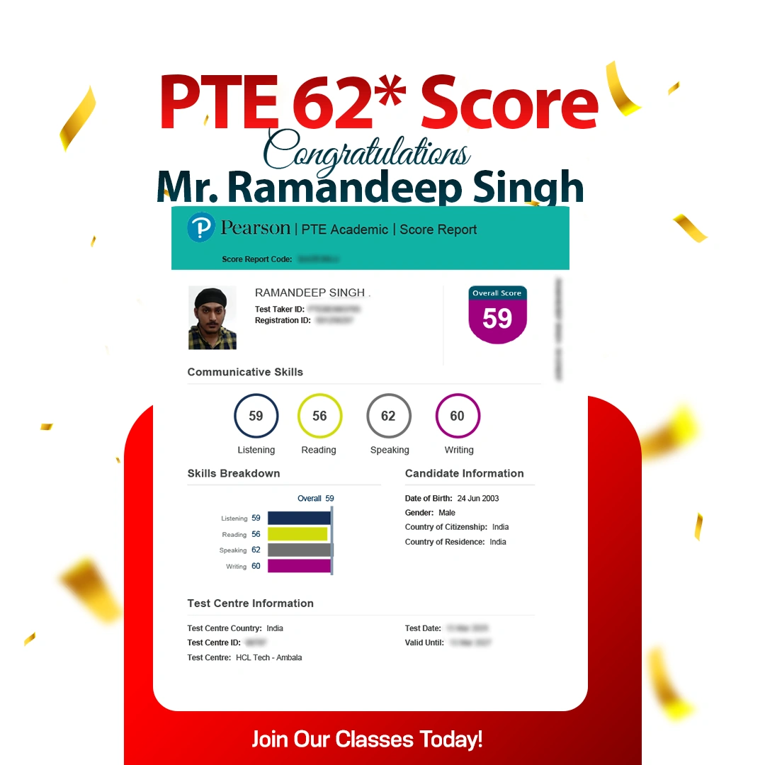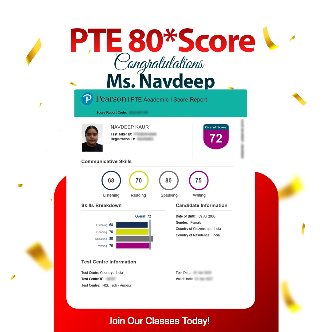 Parampreet Singh IELTS 8.0 Band With 8.5 In L & R AMBALA