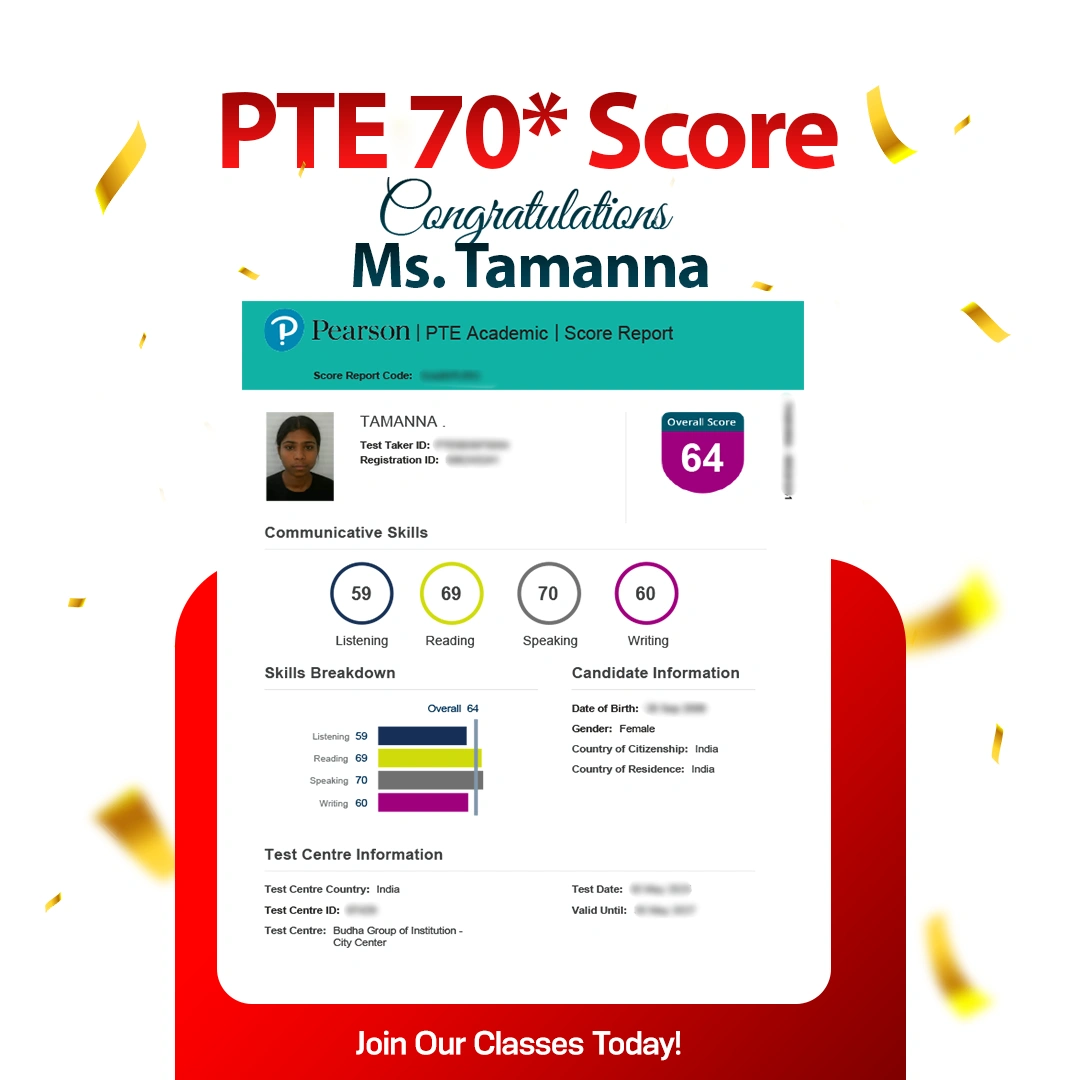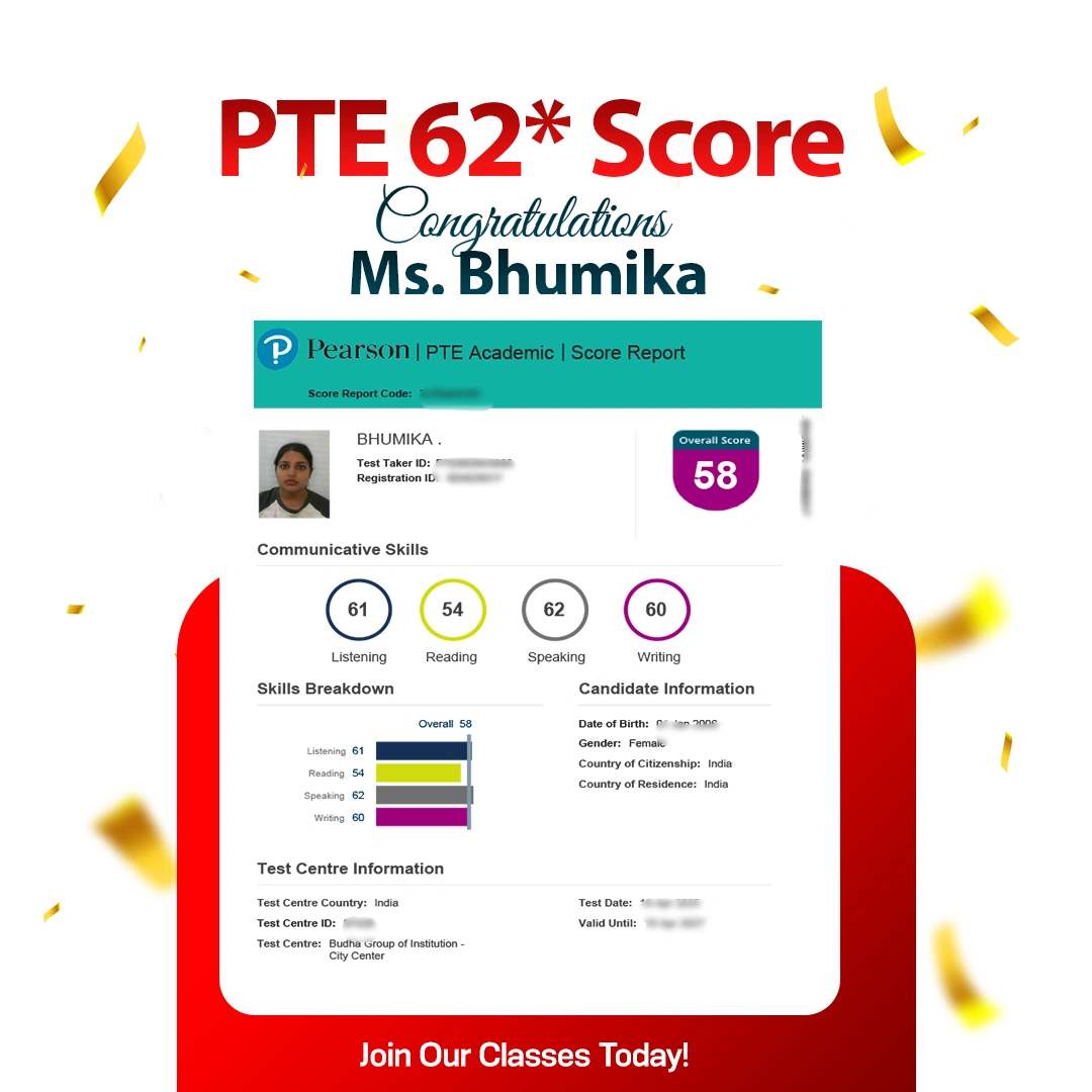 Somya Choudhary PTE 62 Score With 66 In L Online