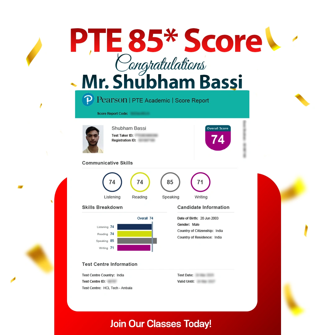 Shivam Sharma PTE 76 Score With 90 In R Online